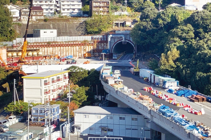 全長約4㌔のうち、牛田東地区の住宅地の真下を通る「二葉山トンネル」(約1・8㌔)の掘削作業を昨年4月末に完了した。18年に始まった掘削工事は、大型掘削機の破損や地表面の隆起などのトラブルが続発。当初の22年度中の完成予定から大きくずれ込んだものの、27年度上期に開通する見通しとなった。現在はトンネル内の設備工事や、5号線と2号線(府中仁保道路)を結ぶ橋架工事などを進めている。