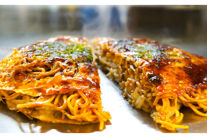 「麺の味付けにケチャップを使うという麗ちゃんならではの手法に感銘を受け、当店でも行っている。麺1本ずつ丁寧に火を通し、高温でトマトなどの酸味が飛ぶため程よい甘みが広がるのです。このほかキャベツは外葉を太切り、甘みのある芯に近い部分は細切りに。そのうま味が逃げないように優しくヘラで抑えるなど『端まで美味しいお好み焼き』を目指し、細部までとことんこだわり抜いています」