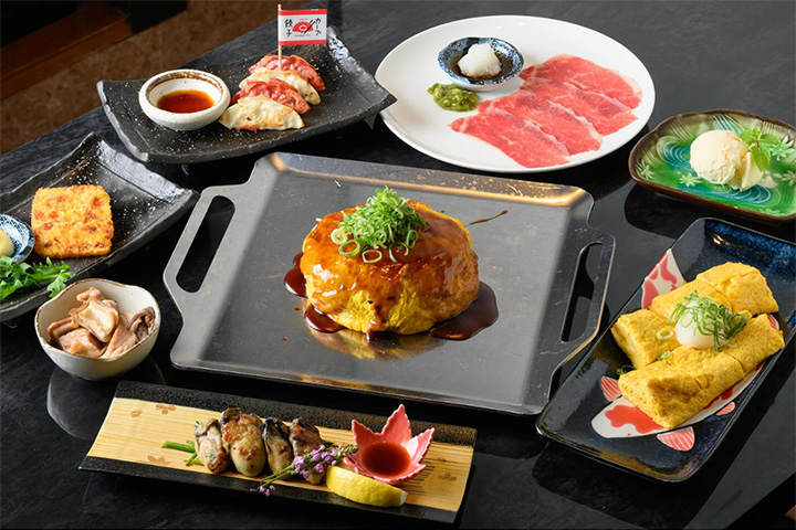 「焼肉馬場ちゃん」運営のアップドラフト(中区)が7月1日に開いた新業態。広島牛など県産食材を使う鉄板焼きとお好み焼きを提供する。