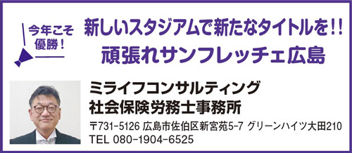後援会はサンフレッチェ広島を応援するとともに、広島サッカー文化の振興・普及を目的としております。新スタジアム開業を追い風に、人と人とが生き生きと交流する活力あふれる地域づくりに貢献していきたいとの思いを強くしています。新スタジアムにまだ来場されていない皆さまには、ぜひ一度、足をお運びいただいてサッカーどころ広島の熱を感じていただきたいと思っております。